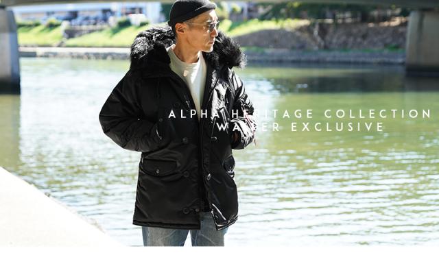 ALPHA アルファ HERITAGE COLLECTION 797-5252028 WAIPER別注 VINTAGE N-3B フライトジャケット ブラックファー【Sx】【T】