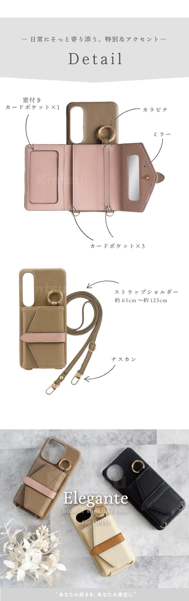 公式 Elegante OPPO Reno14 5G ケース OPPO Reno13A ケース ショルダー ベルテッド バイカラー oppo reno14 5g reno13a ケース オッポ スマホショルダー ミラー付