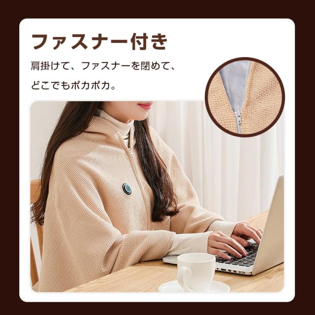 わずか15秒で瞬時に温まる高速発熱機能を搭載。従来の電気毛布とは異なり、待たされるストレスがありません。さらに、ブランケット内に配置された4箇所の独立発熱エリア(遠赤外線発熱方式)が、肩、背中、腰など広範囲をムラなく包み込み、全身を効率的に温めます。オフィスでの作業中やリビングでのくつろぎタイム、就寝時など、あらゆるシーンで心地よい暖かさを持続します。