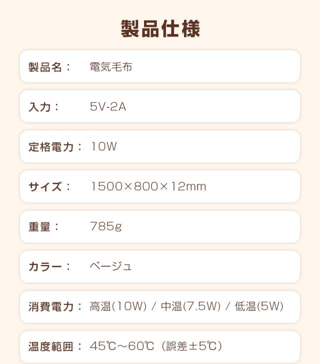 消費電力:高温モード10W/中温モード7.5W/低温モード5W