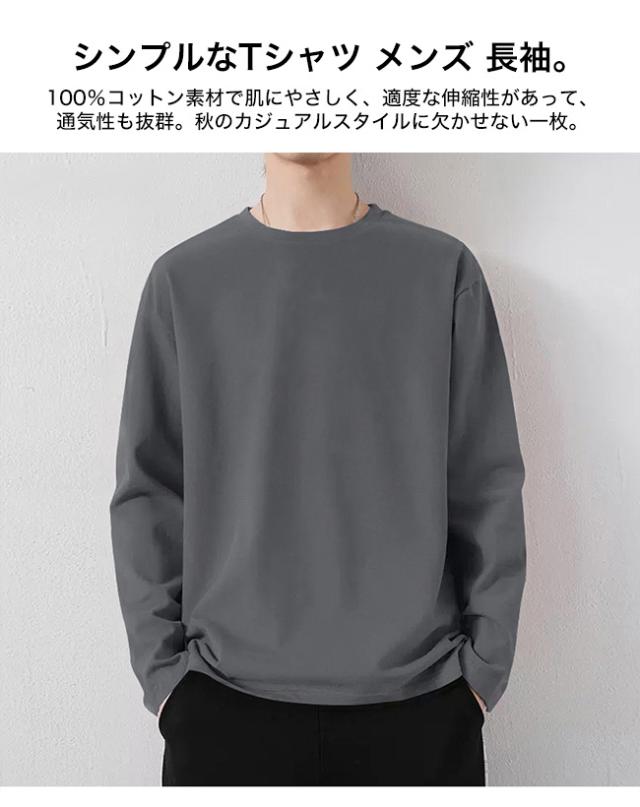 秋新作 Tシャツ 長袖 メンズ 無地 ロングtシャツ トップス 軽量 薄手 インナー 人気 定番 シンプル 部屋着 春夏秋冬