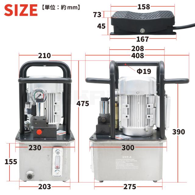 油圧ポンプ 電動 8L フットバルブ 3/8インチ 70Mpa 750W 2段階出力 容量8リットル 電動油圧ポンプ KIKAIYA