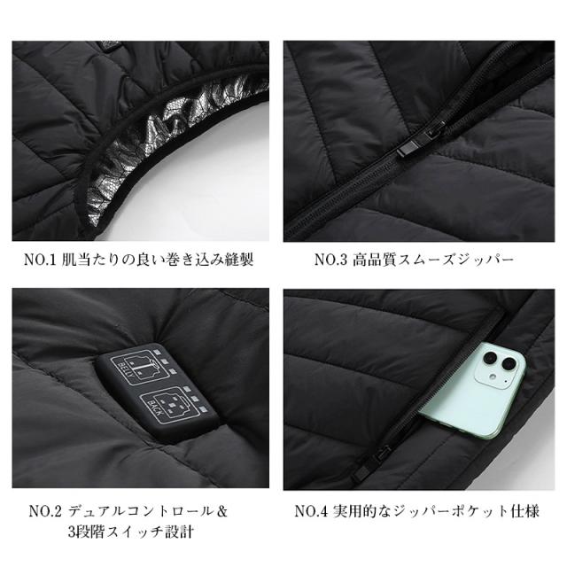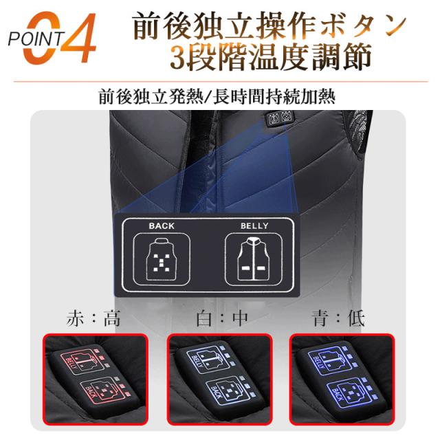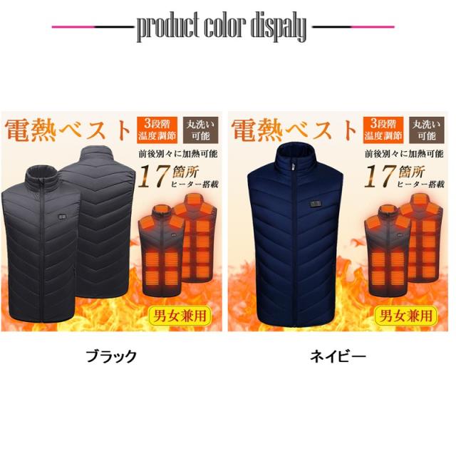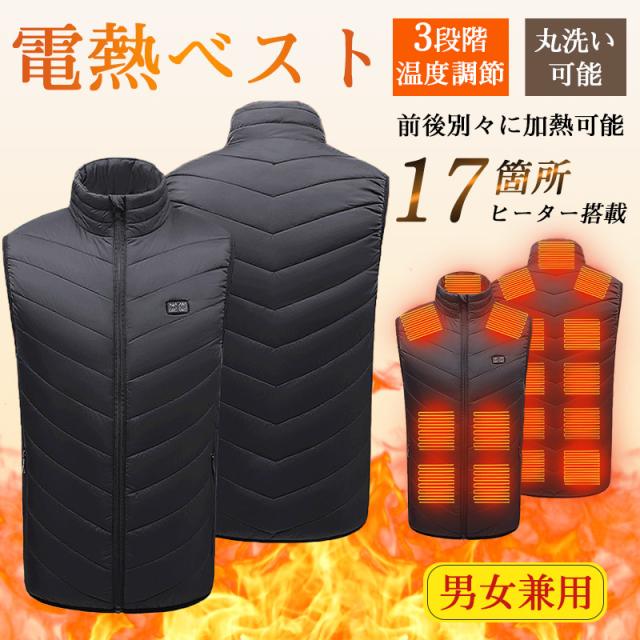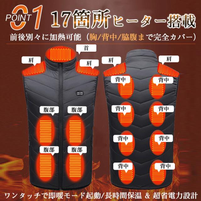 【17エリア前後別々発熱・今期最新モデル】電熱ベスト 加熱ベスト モバイルバッテリー USB給電 メンズ レディース 3段階 アウトドア 水洗い可能