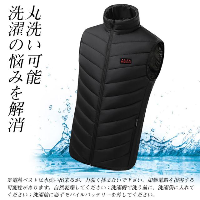 ※電熱ベストは水洗い出来るが、力強く揉まないで下さい、加熱電路を損害する可能性があります。自然乾燥してください;洗濯機で洗う前に、洗濯袋に入れてください;洗濯前に必ずモバイルバッテリーを外してください。