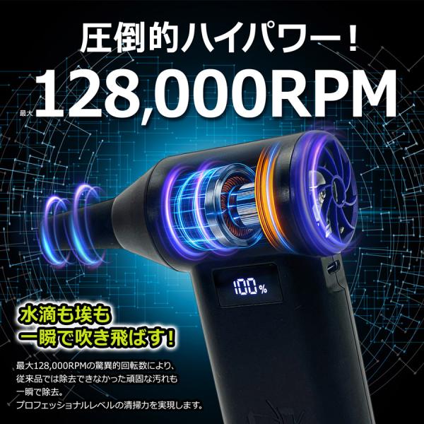 高い回転数による力強い風で、水滴やほこりを効率よく除去できます。