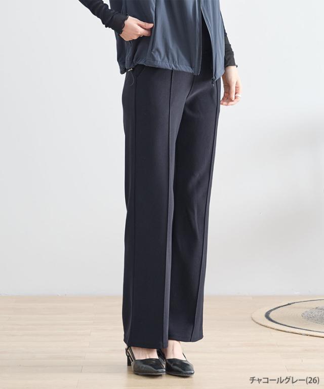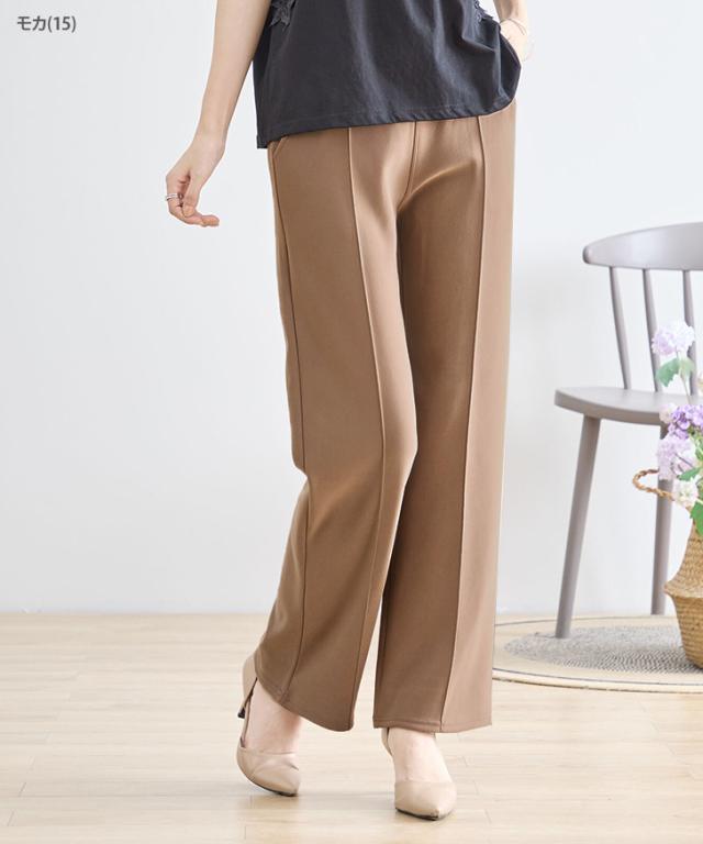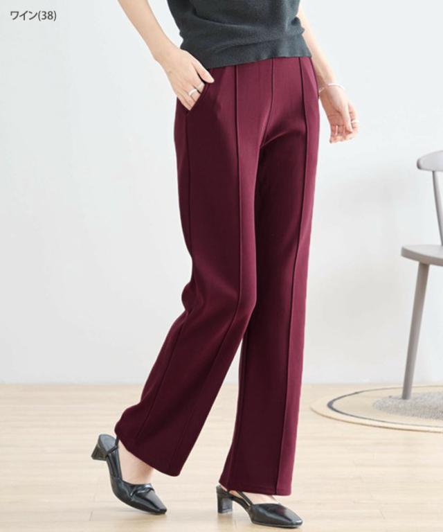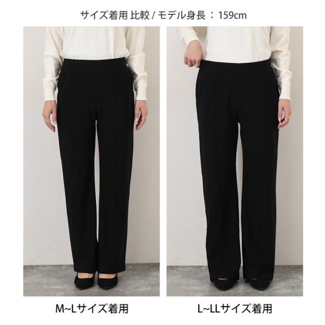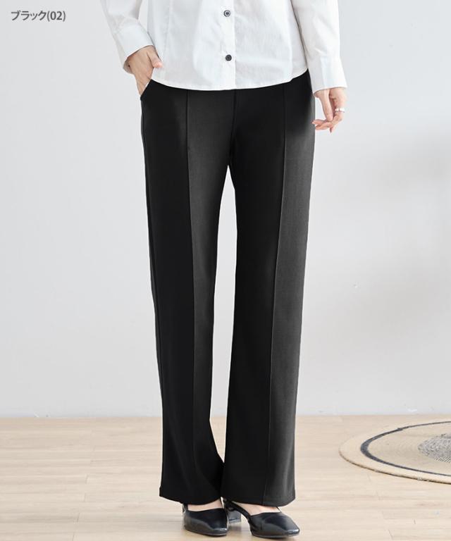 新作 サイドポケットセンターシームストレッチストレート美脚パンツ レディース ボトムス ストレートパンツ 秋 冬 大きいサイズ ウエストゴム 伸縮 伸びる 通勤 きれいめ オフィス 会社 仕事 フォーマル 楽ちん