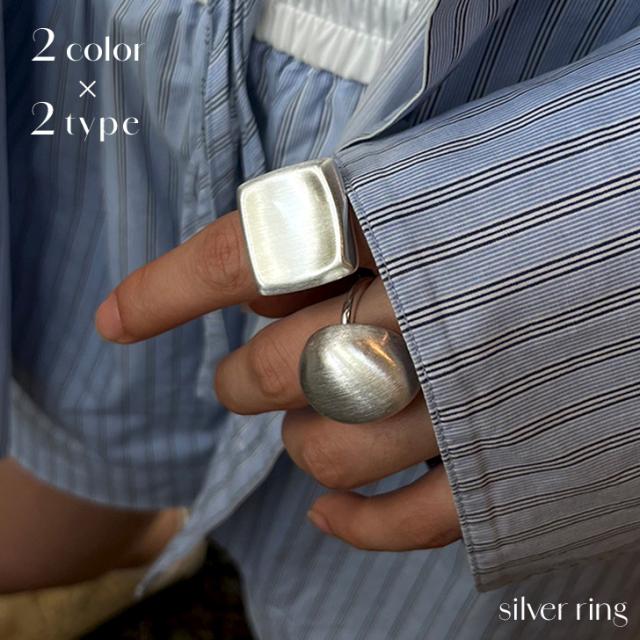 新作 選べる2タイプ×2カラーシンプルビッグモチーフシルバーリング レディース メンズ 指輪 リング ごつめ フリーサイズ サイズ調整 アクセサリー シルバー 銀 マット つや消し おしゃれ かわいい 大人 お呼ばれ