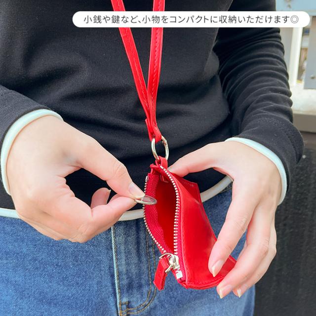 新作 キーリング付きフェイクレザーシンプルネックポーチ選べる2カラー メンズ レディース ポーチ 小物入れ ミニポーチ コインケース 小銭入れ ミニ財布 レザー 革 首掛け 小さめ 軽量 ストラップ おしゃれ 可愛い