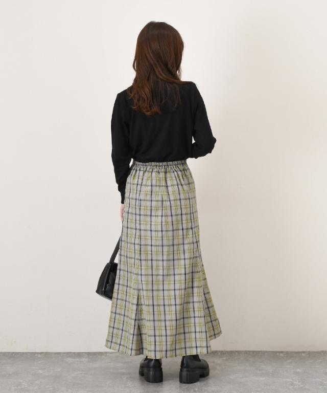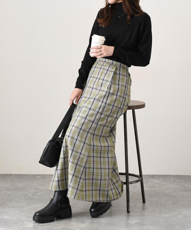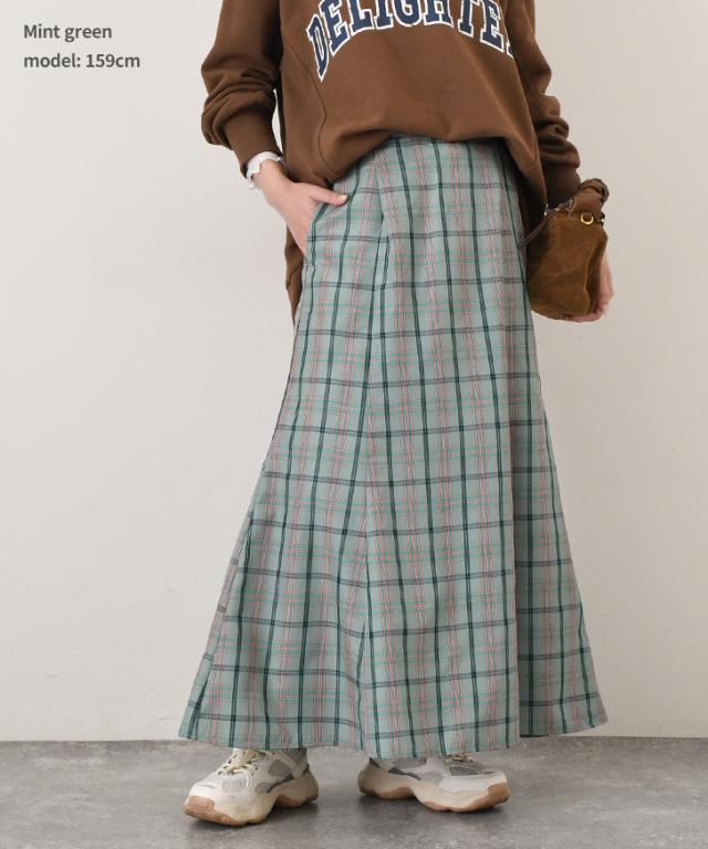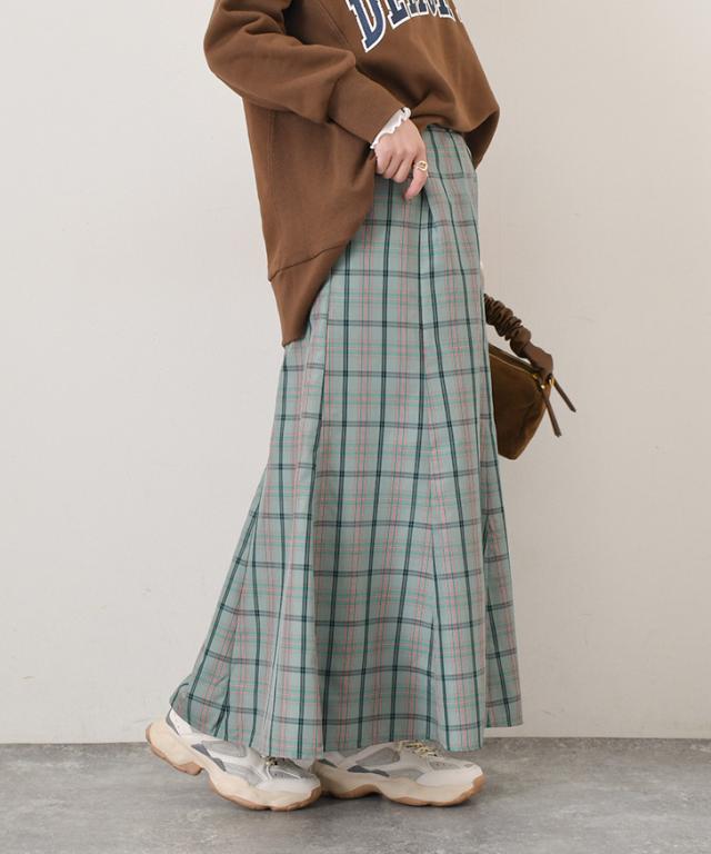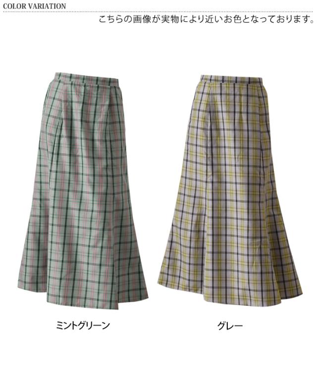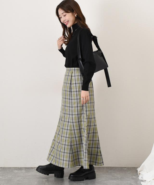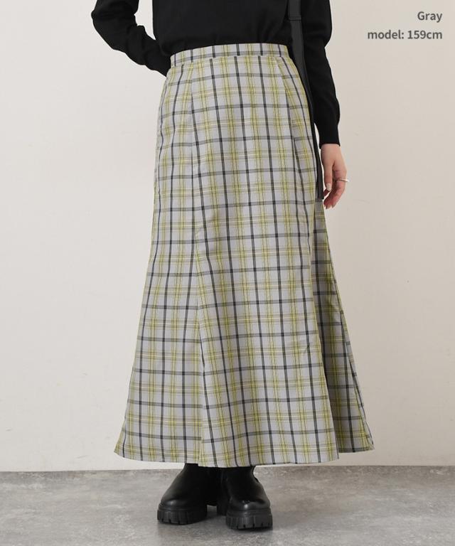 新作 サイドポケットチェック柄ロングマーメイドスカート レディース ロング丈 薄手 膝下 秋 冬 ボトムス ウエストゴム オフィス きれいめ 可愛い 上品 軽量 高身長 低身長 通勤 通学 チェックスカート 裏地付き