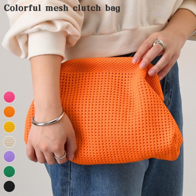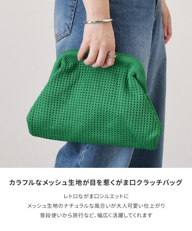 カラフルなメッシュ生地が目を惹くがま口クラッチバッグ
