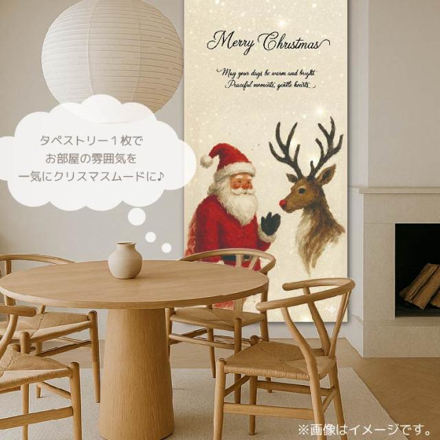 クリスマスタペストリー タペストリー クリスマス のれん 壁掛け ツリー リース サンタクロース 北欧風 シンプル ナチュラル インテリア 85×150cm おしゃれ かわいい ミラーレース生地 2way クリスマス雑貨 クリスマス飾り