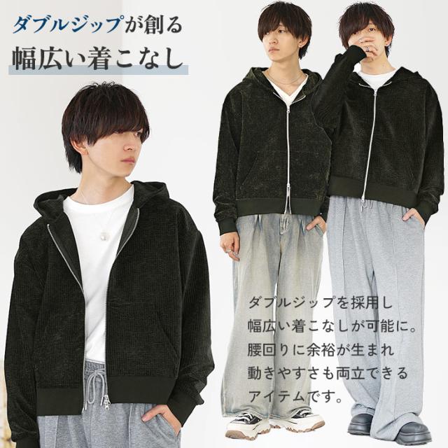 「高見えするツヤ感」ヘビーウエイトコーデュロイダブルジップフードパーカー【コーデュロイダブルジップパーカー】