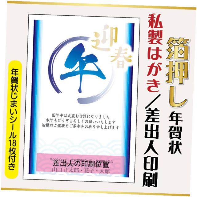 箔押し年賀状 私製はがき 20枚 文章印刷済み 年賀状じまいシール付 2026年 差出人印刷込み(デザイン:hakuoshi20) うま 馬 午年
