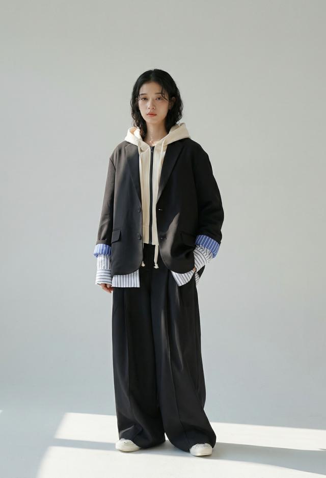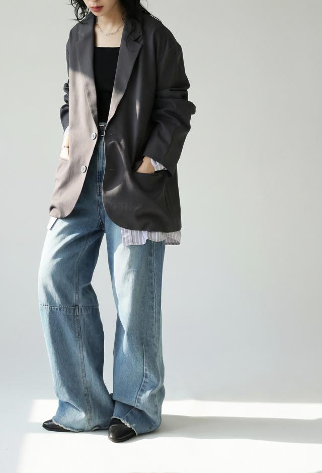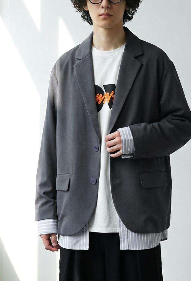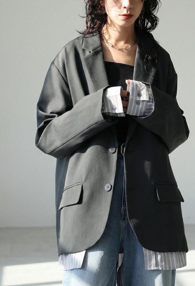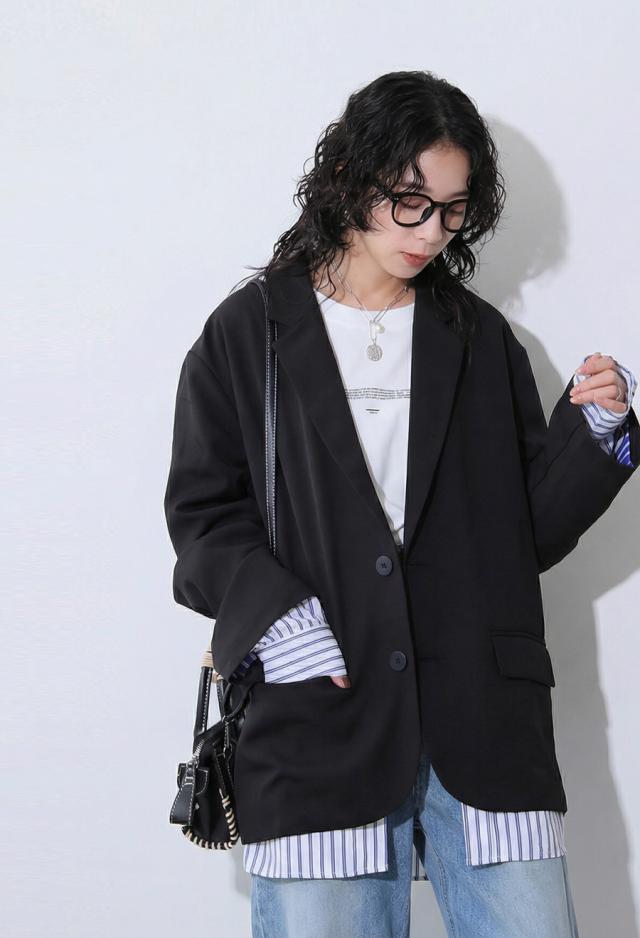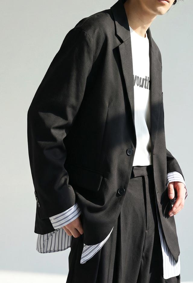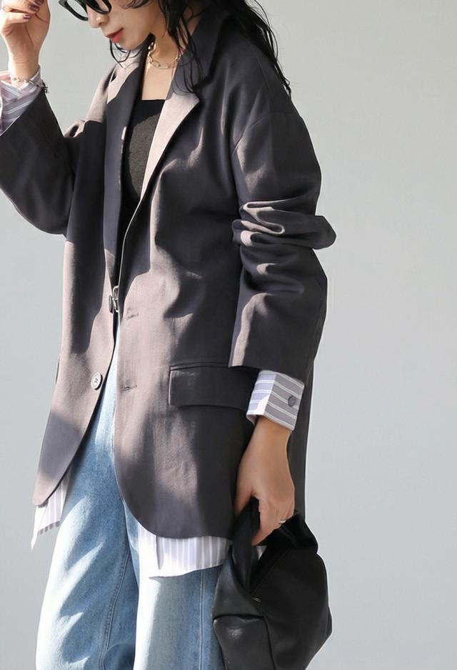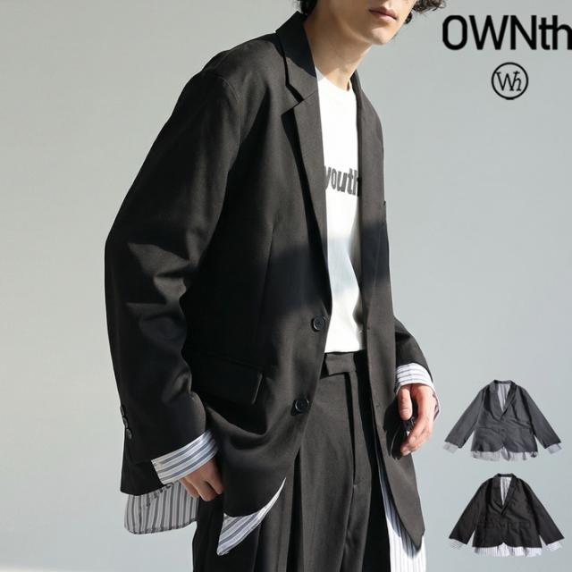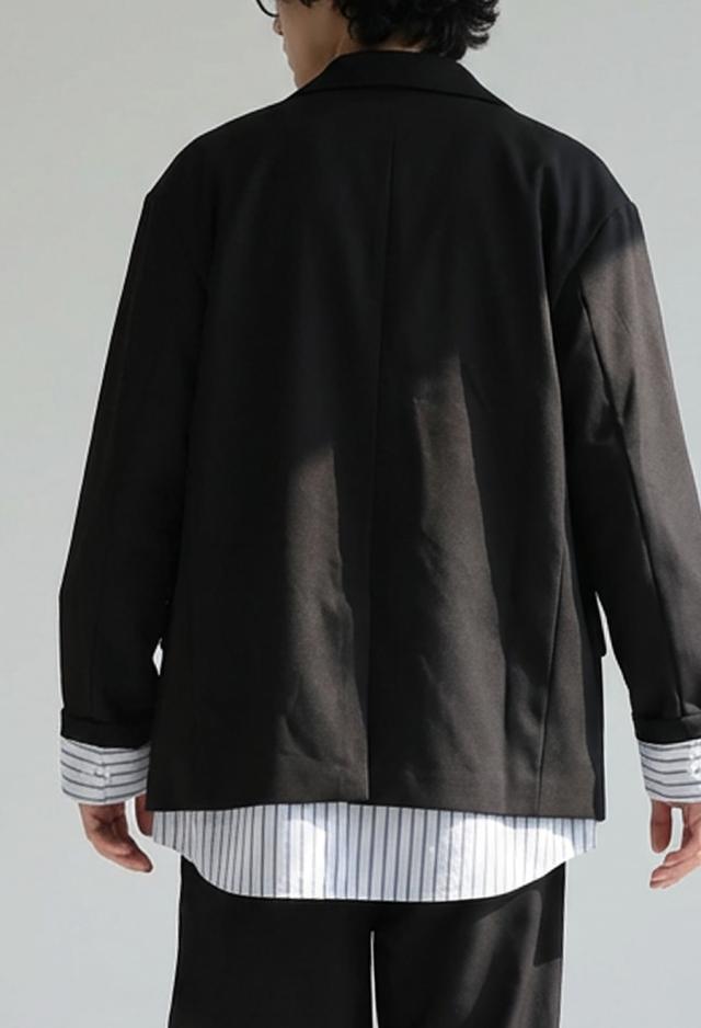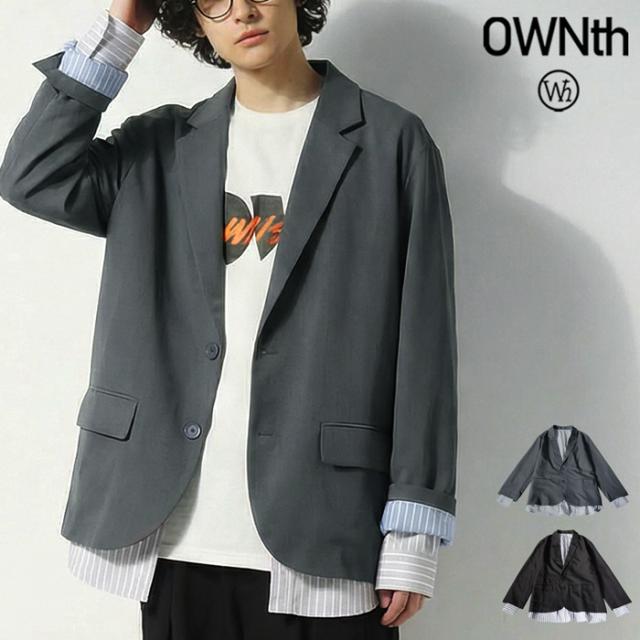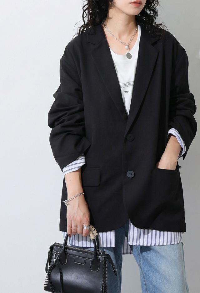 owt-5048z テーラードジャケット 長袖 ストライプ柄 柄 無地 切り替え オーバーサイズ 大人カジュアル きれいめ ゆったり モード ベンツ開き ユニセックス 前開き シングル ボタン