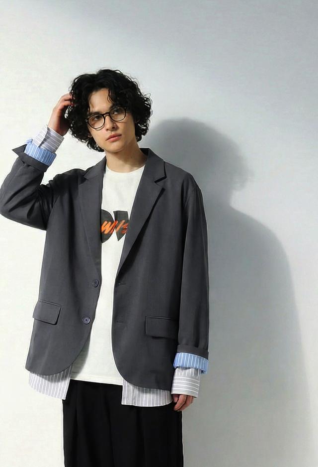 一枚で印象が決まる、テーラードカラーのレイヤード風ジャケットです。