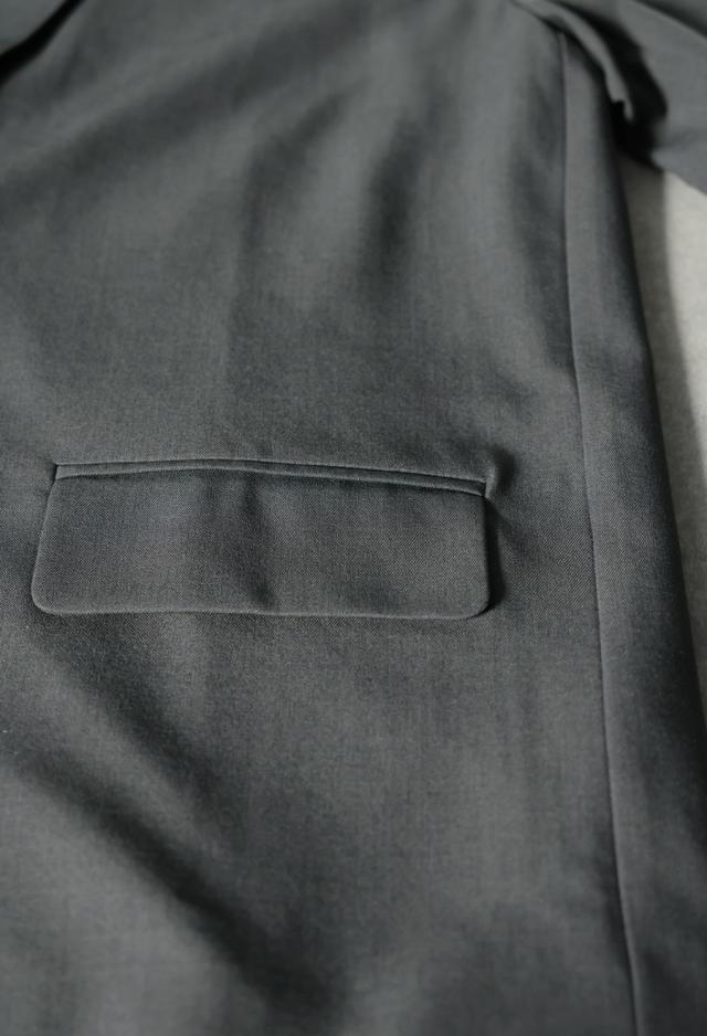 シングルのボタン仕様と前開きのスタイルは、スタンダードな着こなしにも馴染み、オンオフ問わず活躍。