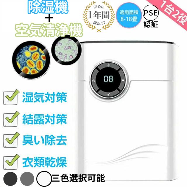 除湿機 衣類乾燥 パワフル除湿 ハイブリッド式 空気清浄機 小型 コンパクト 静音 パワフル 湿気取り 部屋干し カビ かび 梅雨 カビ対策 電気代 省エネ 1台2役