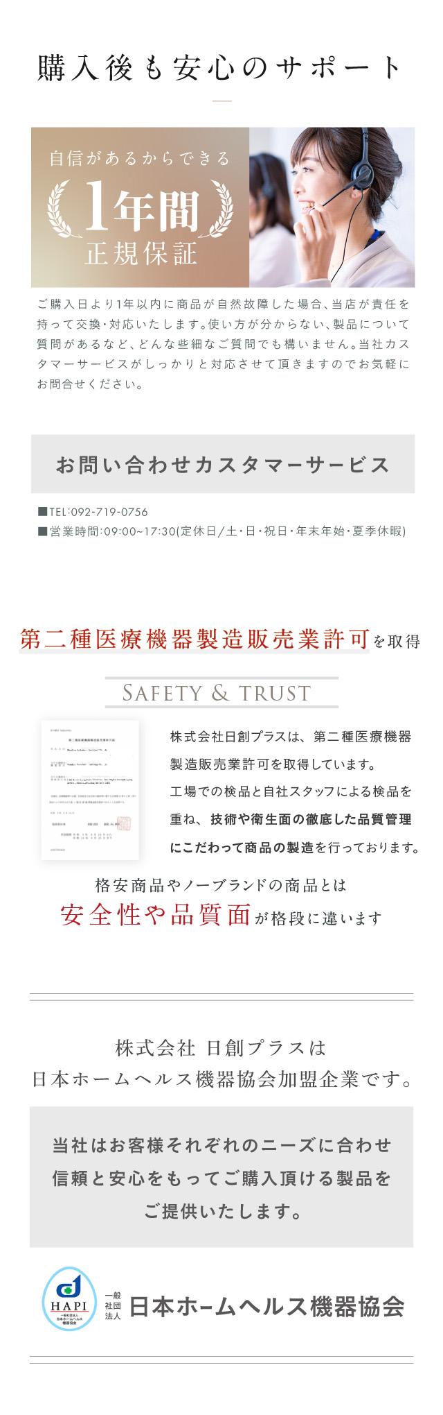 ・使用中、身体に異常を感じたときは直ちに使用を中止し、医師に相談する。