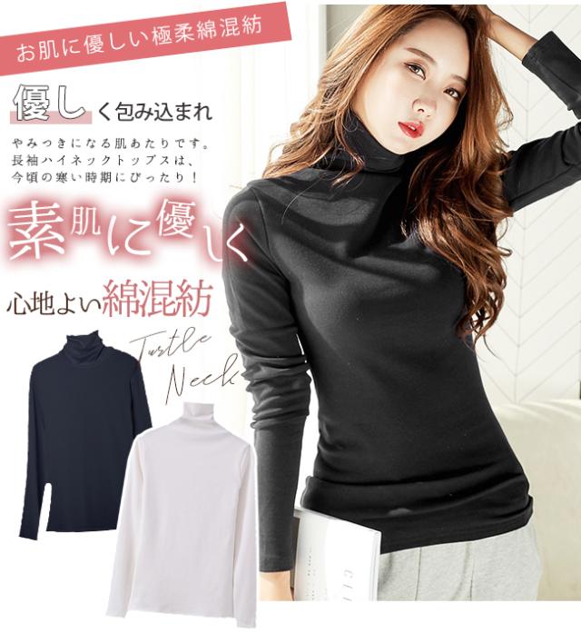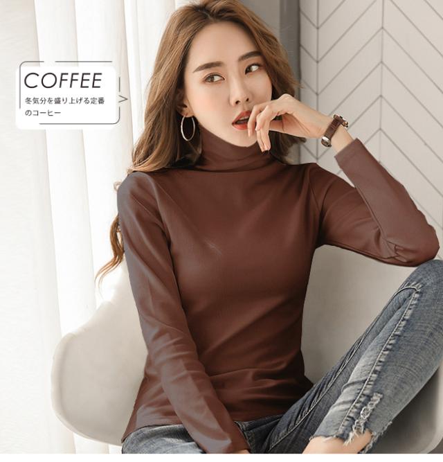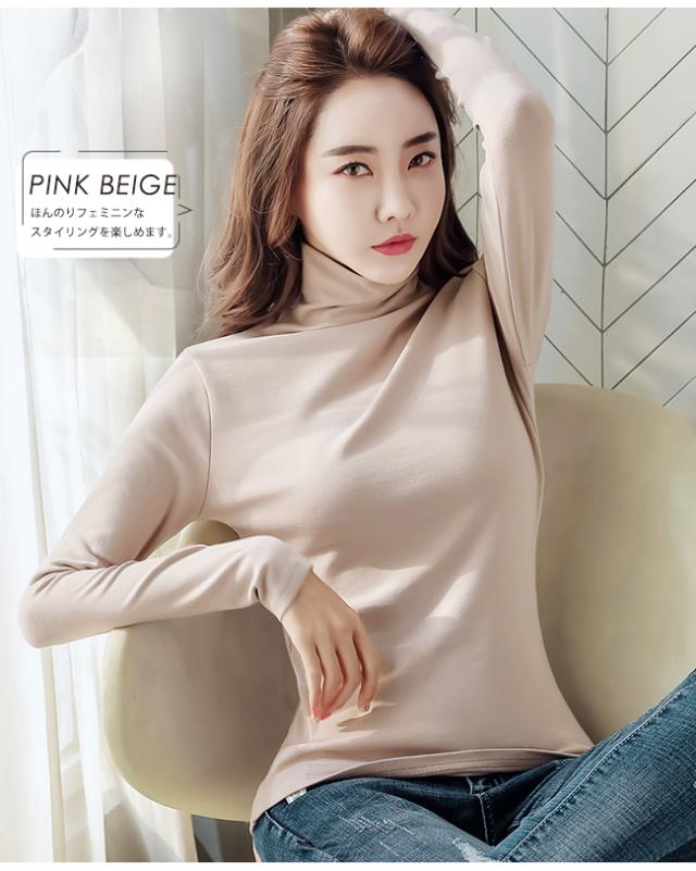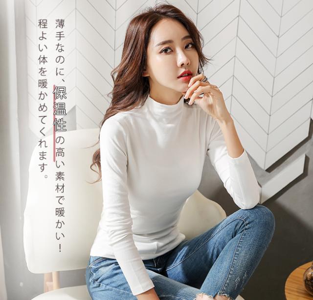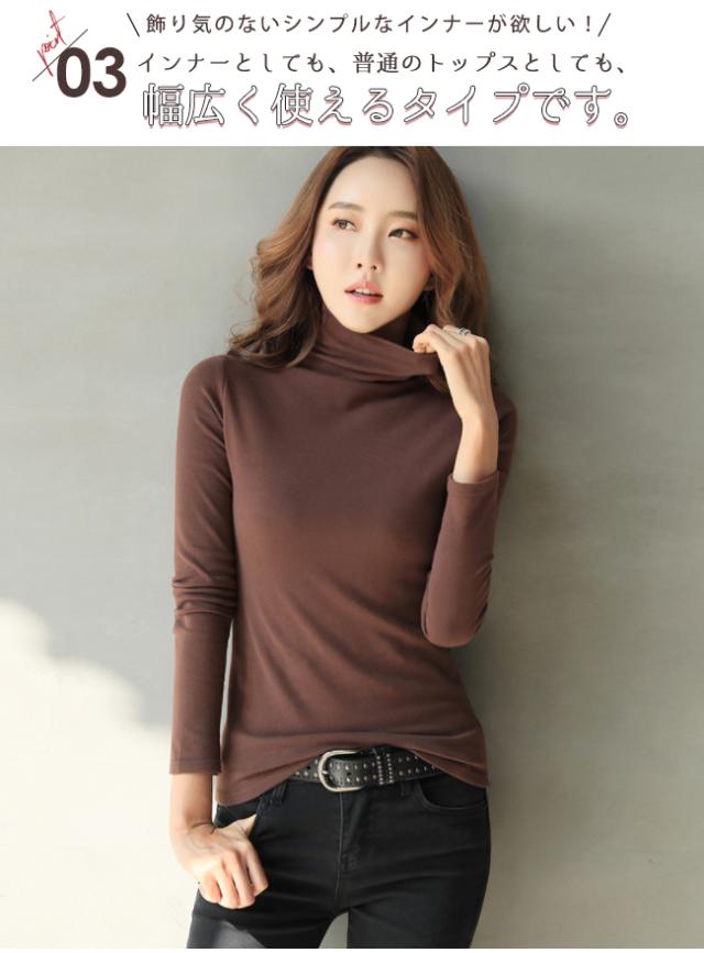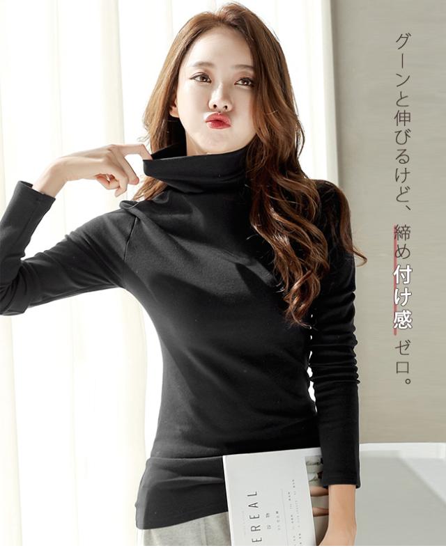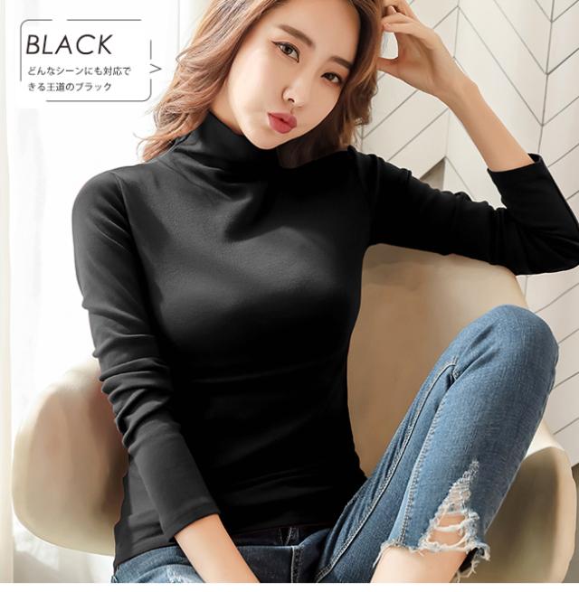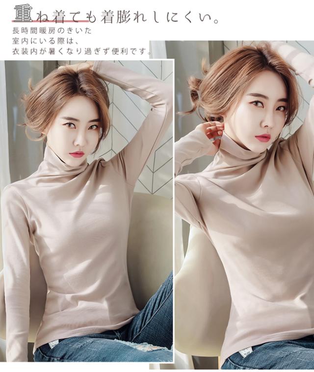 【大部即納】長袖Tシャツ 裏起毛 タートルネック 無地 きれいめ スリム ストレッチ レディース 春秋 カットソー インナー トップス 肌着 アンダーウェア