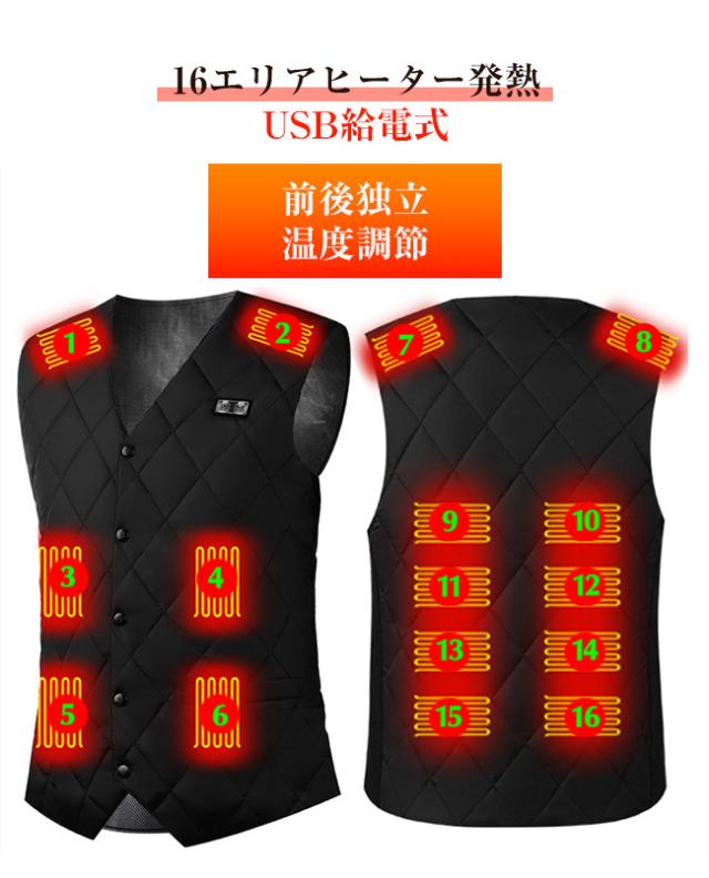 15倍ポイント返還!冬新作 電熱ベスト インナー 薄型 ビジネススタイル 16エリアヒーター USB充電式 3段階温度調節 レディース メンズ Vネック 秋冬防寒 発熱 通勤 室外作業 お釣り 大きいサイズ 男女兼用 電熱インナー ヒーターベスト ポイント消化