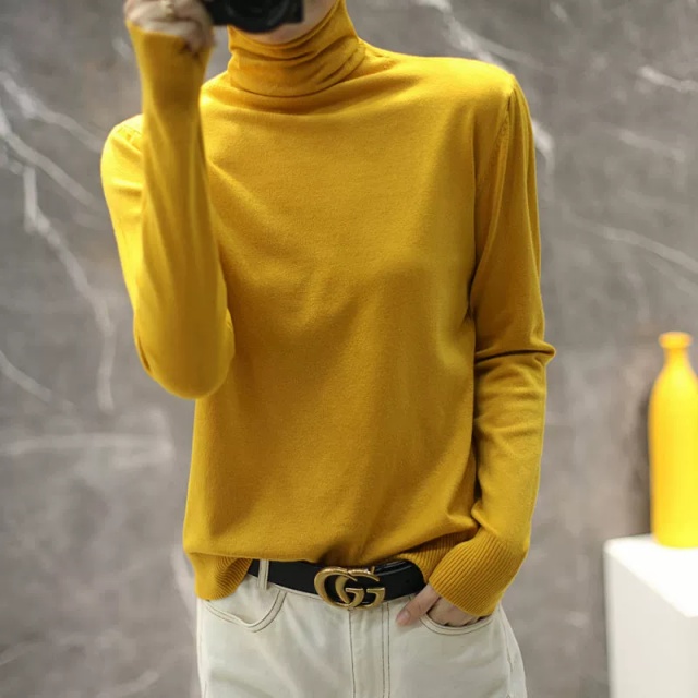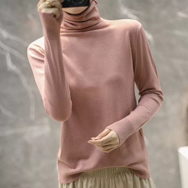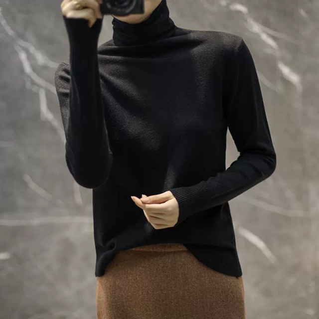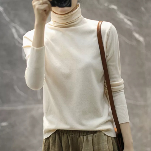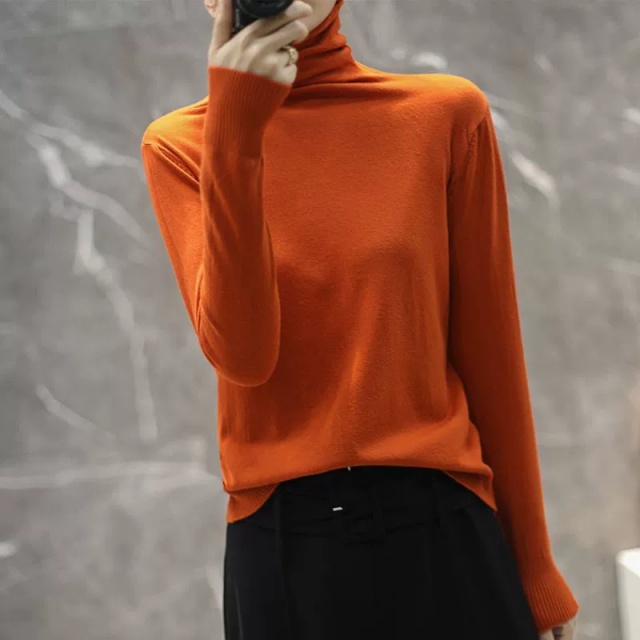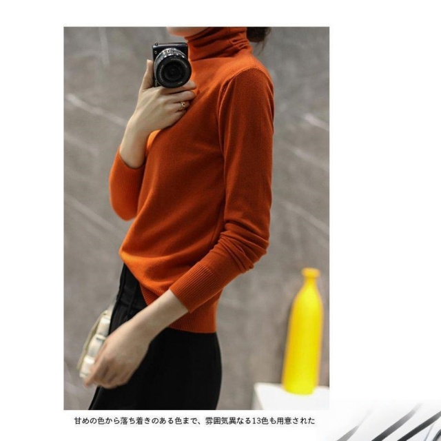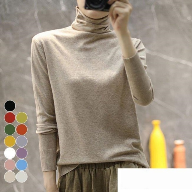 タートルネック ニットセーター レディース ニット きめ細かい ウール混 セーター オフタートル ハイネック シンプル インナー トップス送料無料