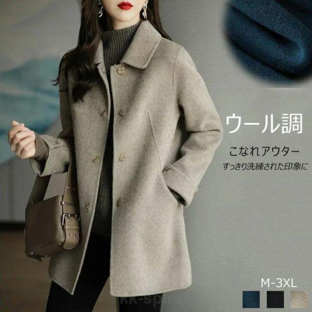 コート レディース アウター スティンカラーコート ウール ハーフコート レディース 軽い 冬 黒コート フェイクウール コート 襟付 暖かい チェスターコート 冬