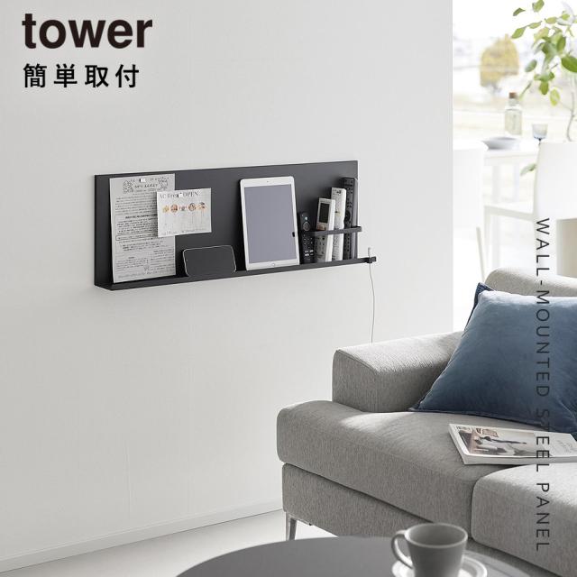 壁付けスチールパネル タワー リモコンホルダー付き 山崎実業 tower マグネット パネル 壁 マグネットボード 壁掛け おしゃれ モノトーン ホワイト ブラック 10352 10353
