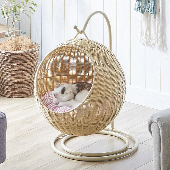 ネコちゃんの癒しの空間を与えるペット用ハンギングチェアー