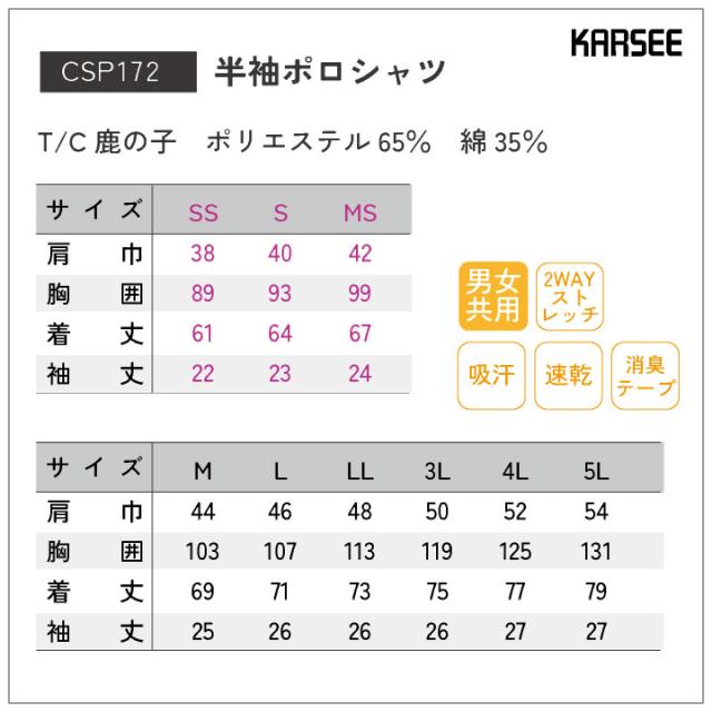 CSP172 カーシーカシマ 半袖ポロシャツ 汗をかいても安心。動きやすさと清潔感を両立する一枚で、毎日の現場を心地よくサポートします。