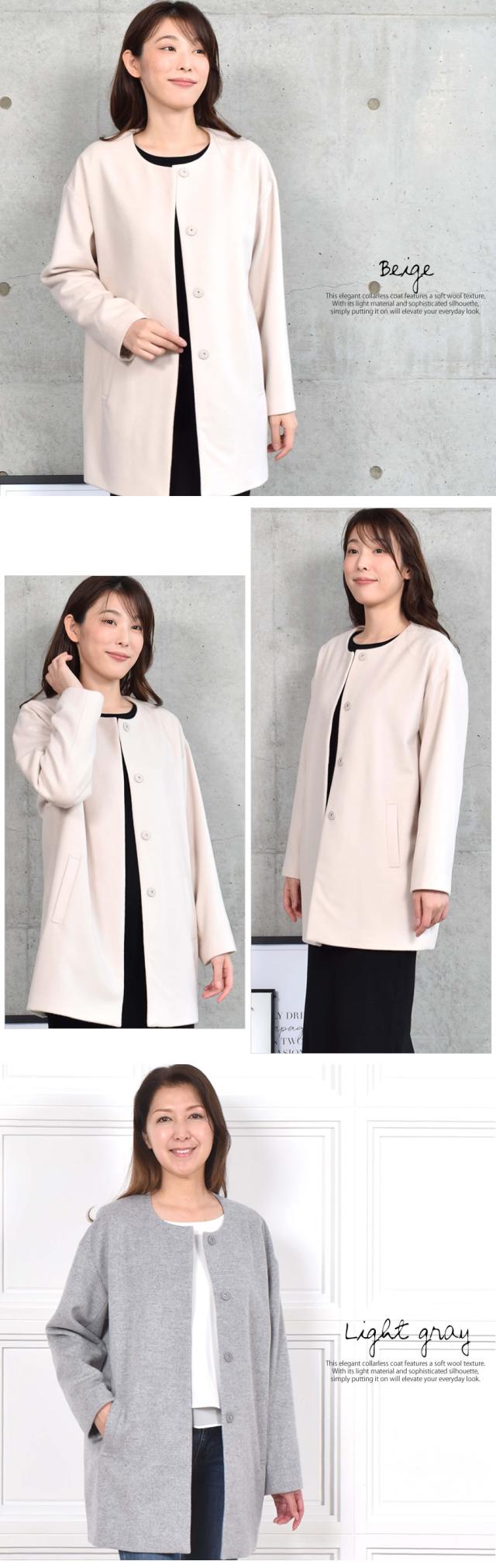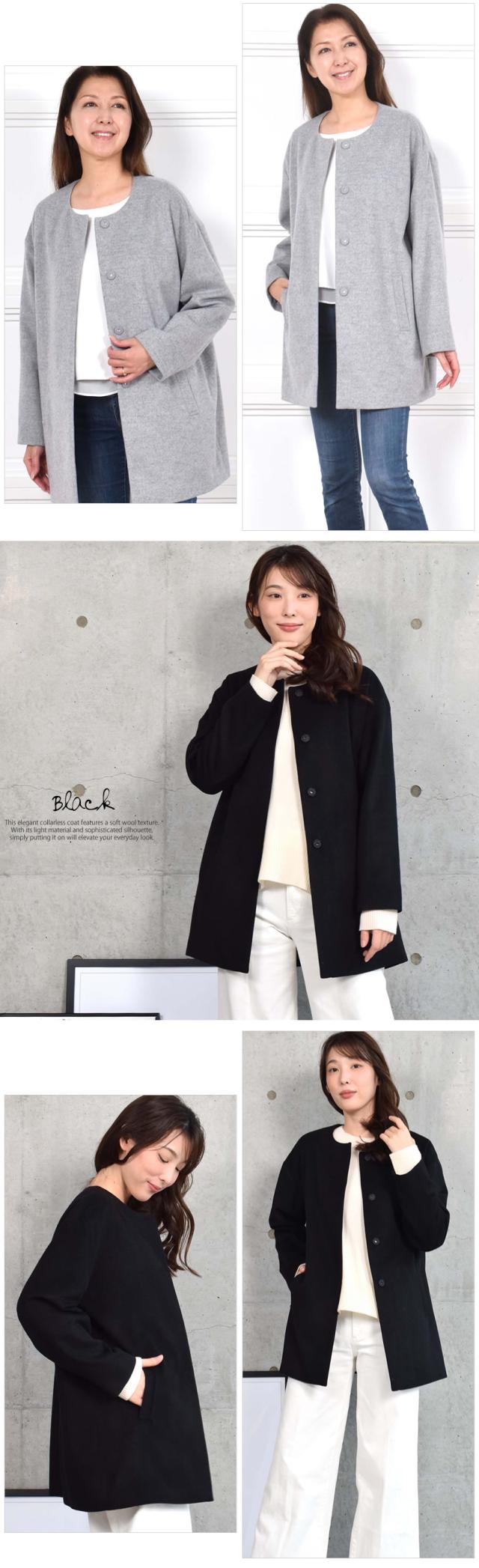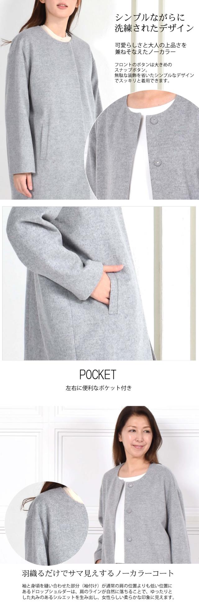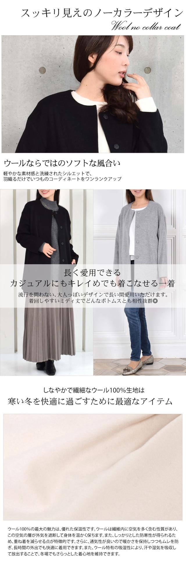 ノーカラーコート ウールコート ウール ロングコート ノーカラーコート ドロップショルダー アウター レディース ミセス プレゼント ギフト 秋 冬 秋冬 通勤 (wo2570)