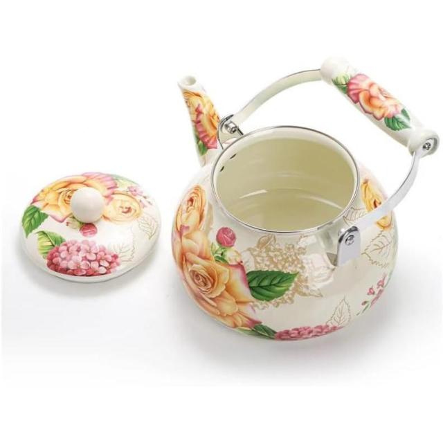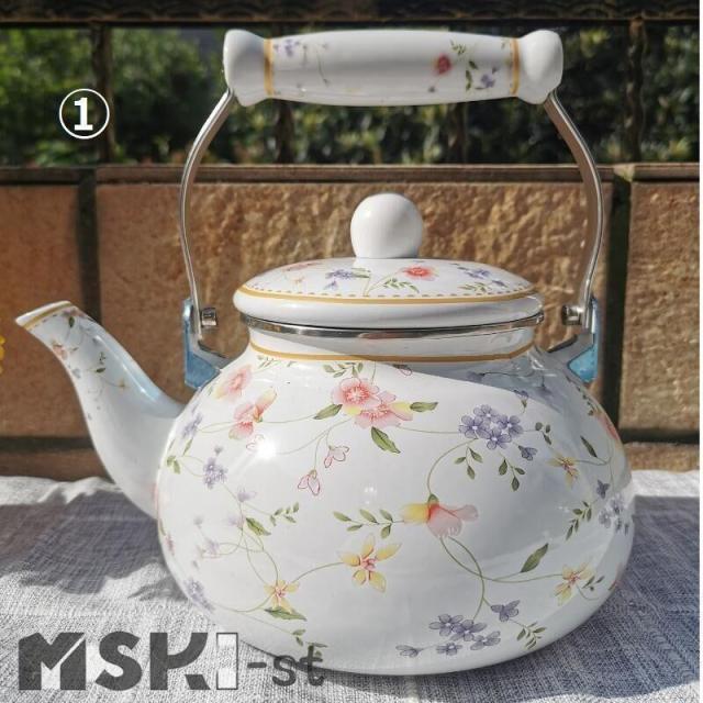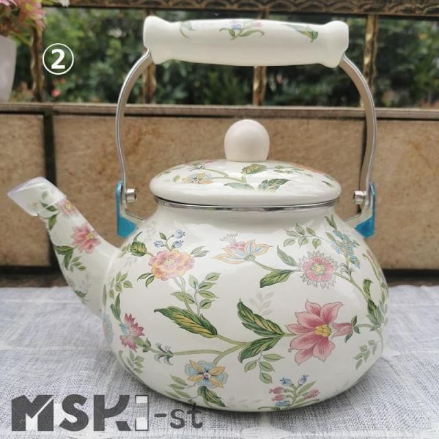 やかん ホーローやかん 2.5L 大容量 ケトル 琺瑯 花柄 バラ 湯沸かし ティーケトル コンパクト 軽量 直火/ガス火/IH対応 北欧 広口 和風