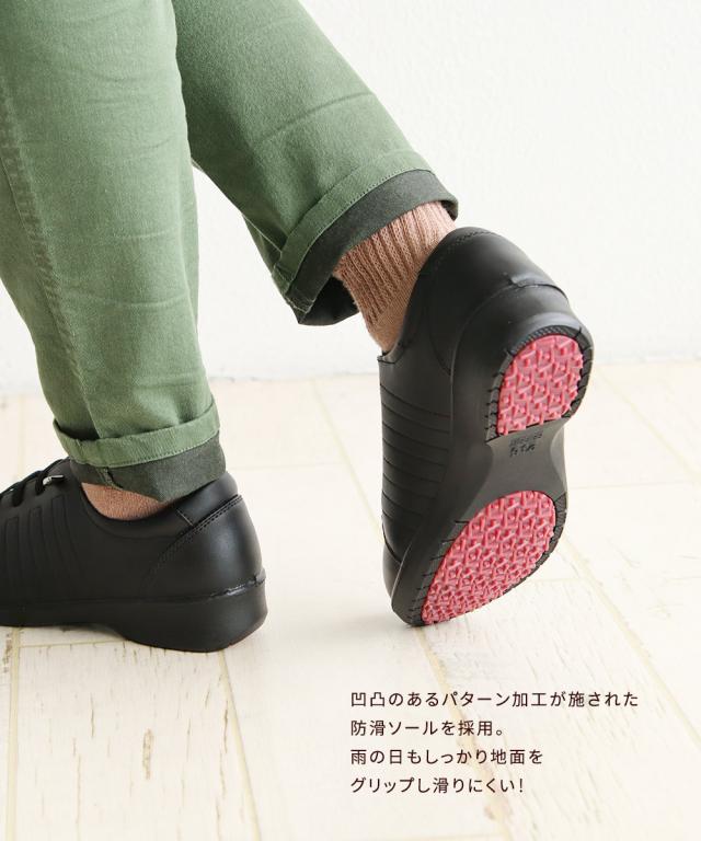 屈曲性のあるソールが足の動きに寄り添い、防滑仕様で安心感もプラス。