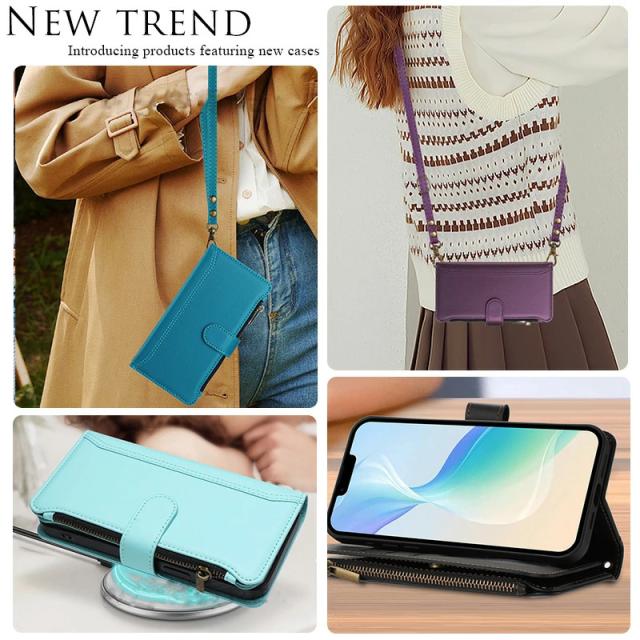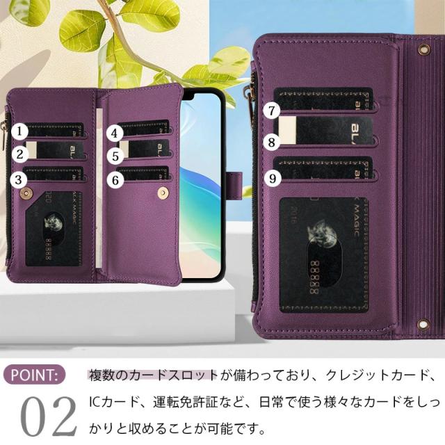 9枚カード 小物収納 Galaxy S25fe ケース 手帳型 ファスナー付き Galaxy S26 ケースショルダー galaxys23fe ケース 財布 ストラップ2本付き Galaxy S25 S24 Utra S23 FE S22 S21 S20+ ケース スタンド機能 Galaxy S10 S9 S8+ ケース おしゃれ女子 斜めかけ 携帯