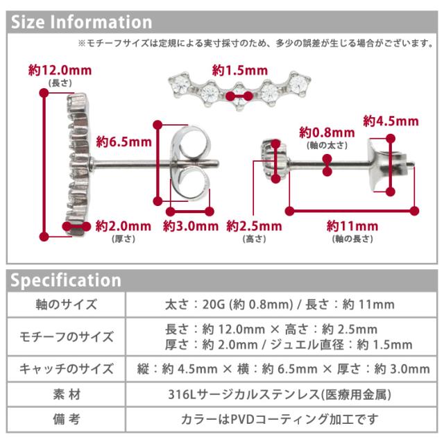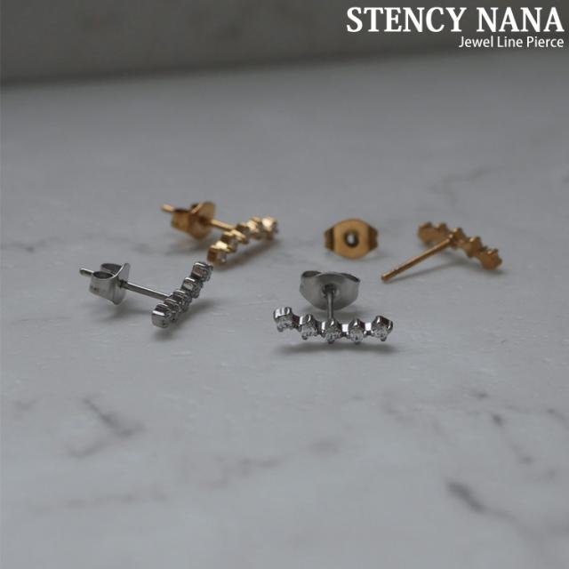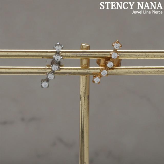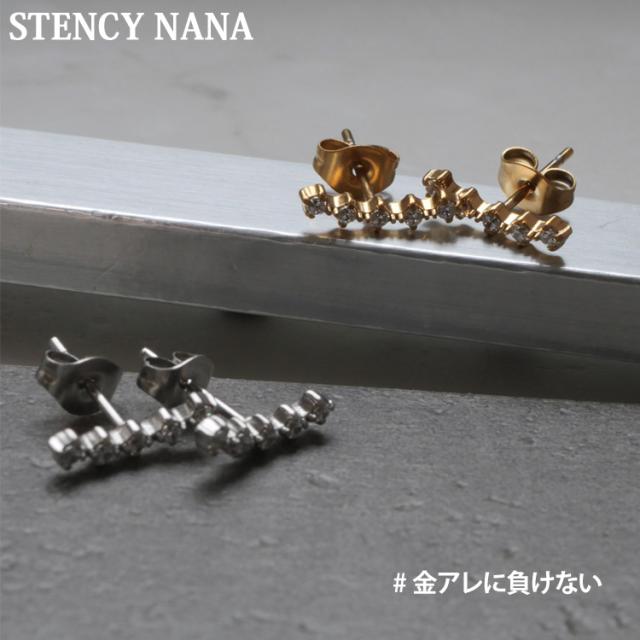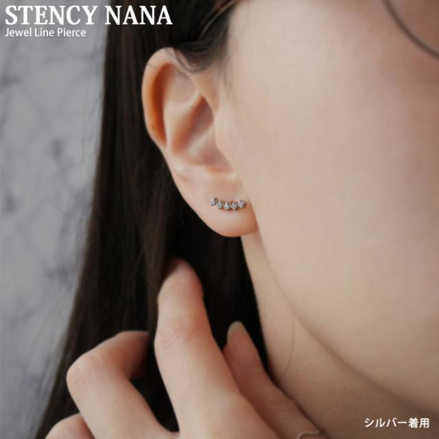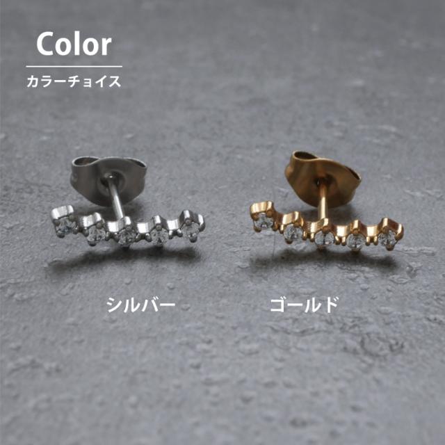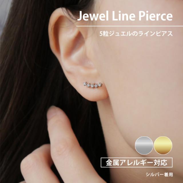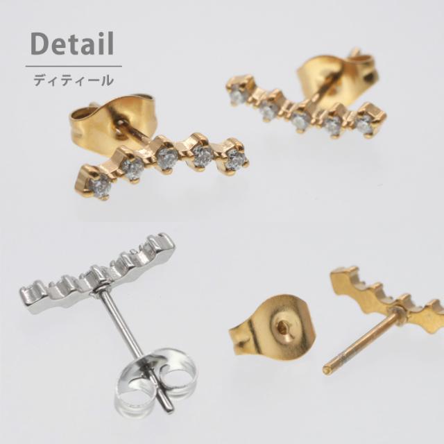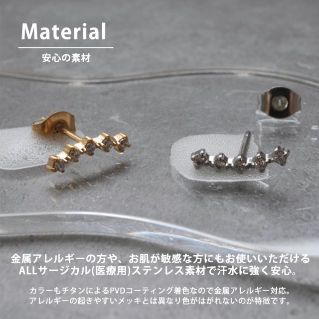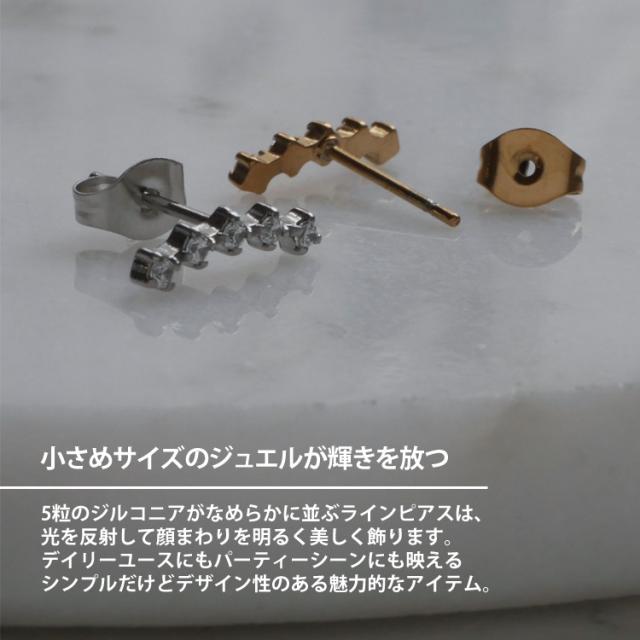 金属アレルギー対応 ステンレスピアス 5粒のジルコニアが輝く ジュエルラインピアス スタッドピアス ファーストピアス セカンドピアス スポーツ プール 両耳用