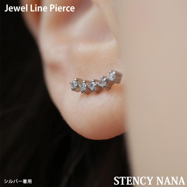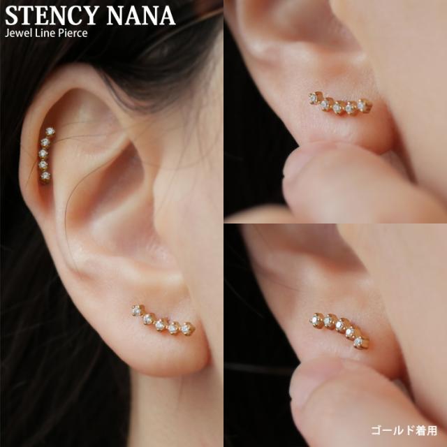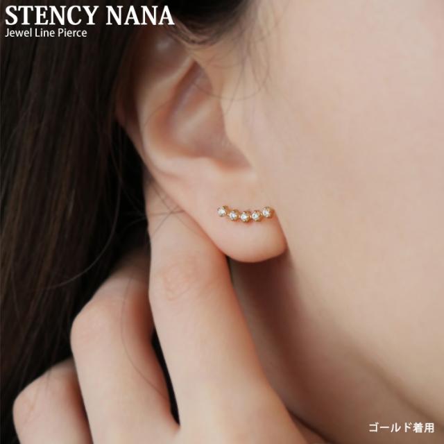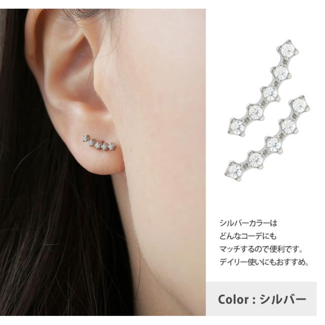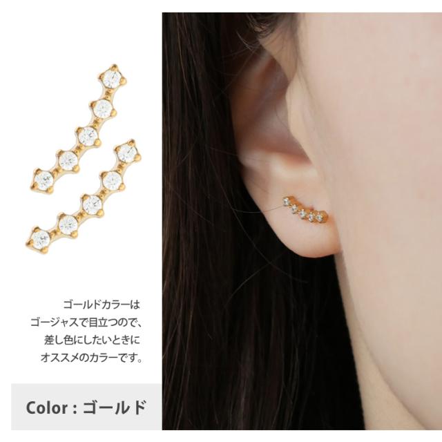 5粒のジルコニアがなめらかに並ぶラインピアスは、光を反射して顔まわりを明るく美しく飾ります。