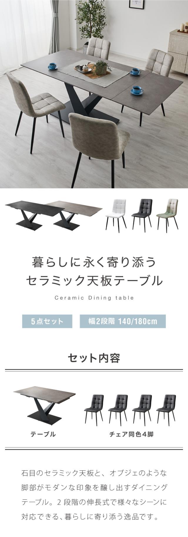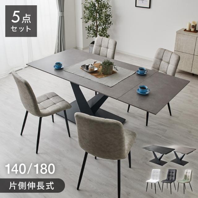 ダイニングセット チェア4脚 セラミック 片側伸長式 幅140~幅180 ダイニングテーブル ダイニングチェア 伸縮 おしゃれ モダン シンプル 拡張テーブル 4人用 6人用 大理石調 石目調 北欧 ダイニング(代引不可)【送料無料】