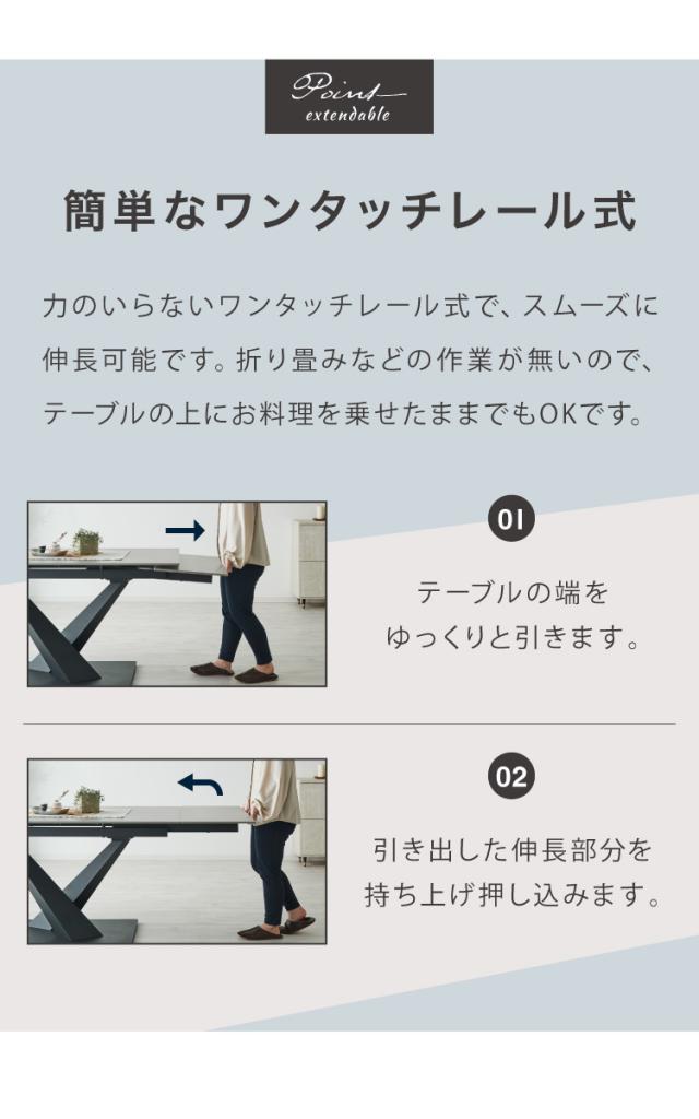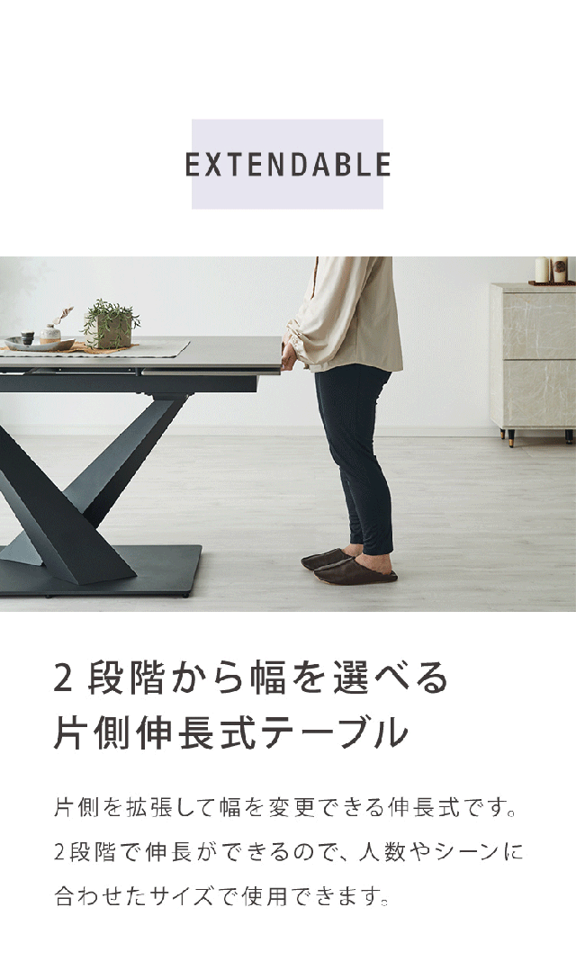 片側伸長式/幅140cm~ | 両側伸長式/幅140cm~ | 伸長式/幅160cm~ |