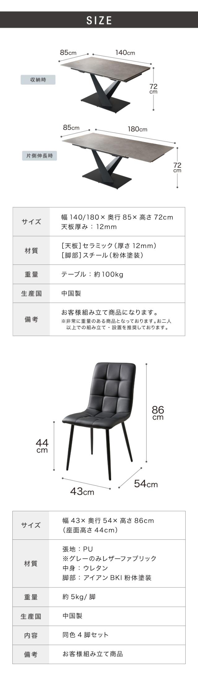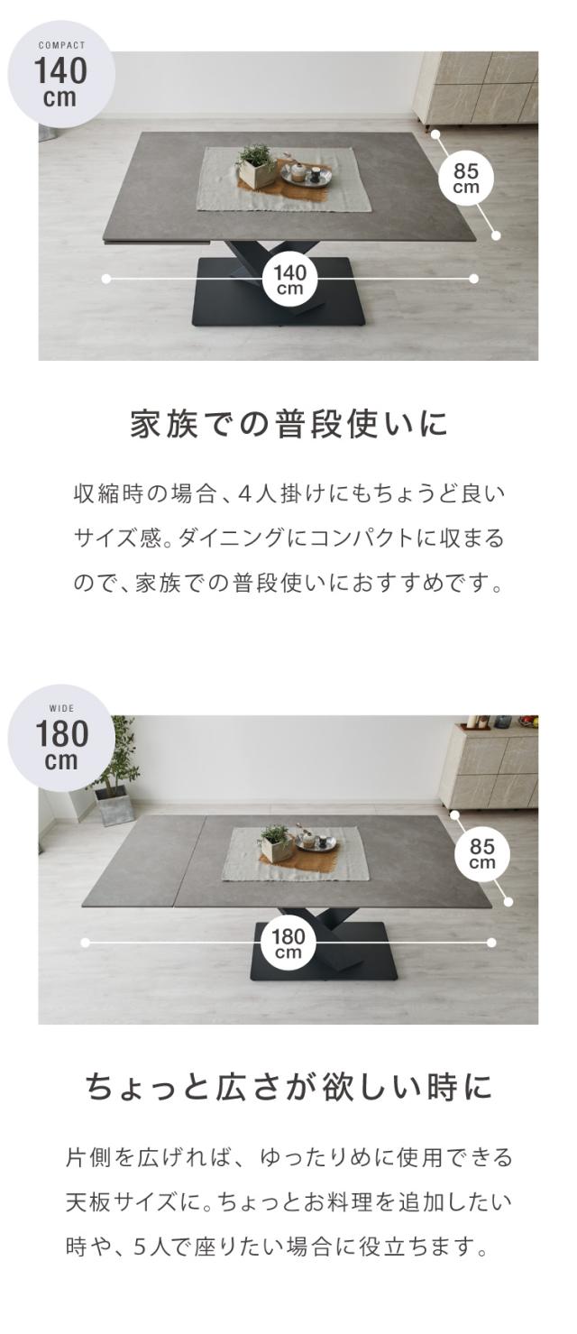 テーブル:幅140〜180×奥行85×高さ72cm