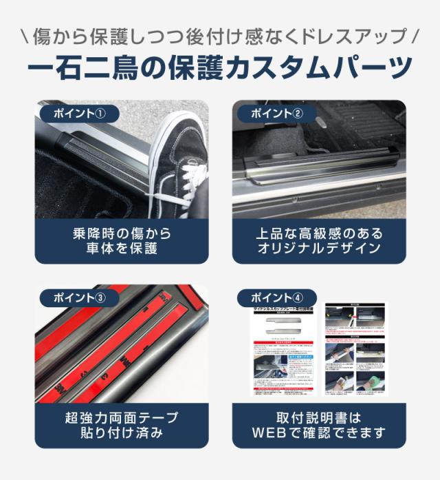 【予約/2月28日頃入荷予定】スズキ 新型クロスビー MND1S MN71S サイドステップ スカッフプレート 滑り止め付き フロント・リアセット 4P 2025年マイナーチェンジ後対応 選べる2色 シルバーヘアライン ブラックヘアライン