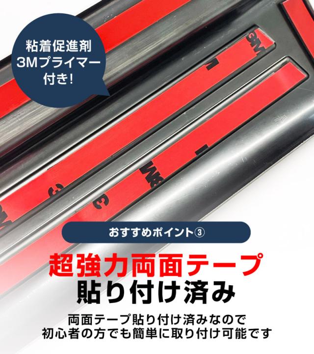 お取り付けは商品裏面に装着済の3M両面テープで貼りつけるだけなので、カスタム初心者の方にも挑戦していただきやすいアイテムです。