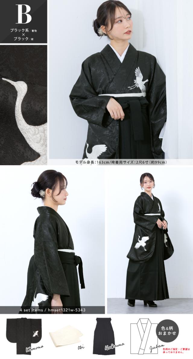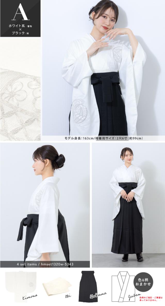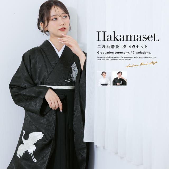 袴セット 卒業式 レディース 女の子 ジュニア 子供 4点セット 着物セット 白 黒 ホワイト ブラック 刺繍 手鞠 鶴 シンプル モダン 和柄 大学卒業式 購入 販売 創美苑 送料無料 身長138から175対応