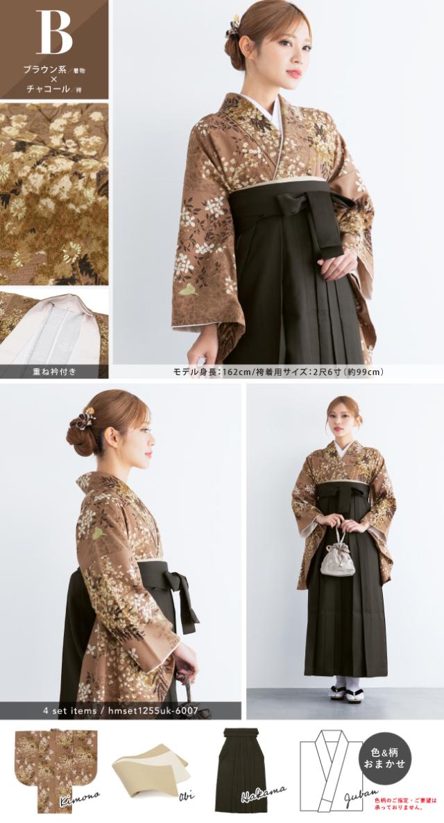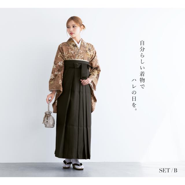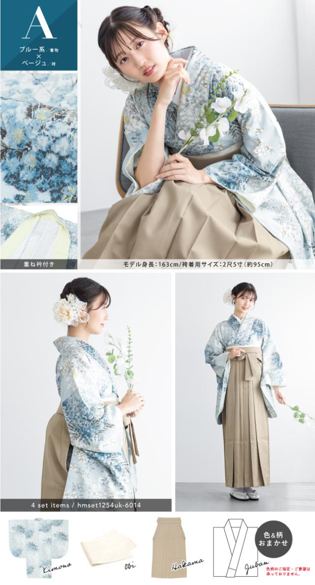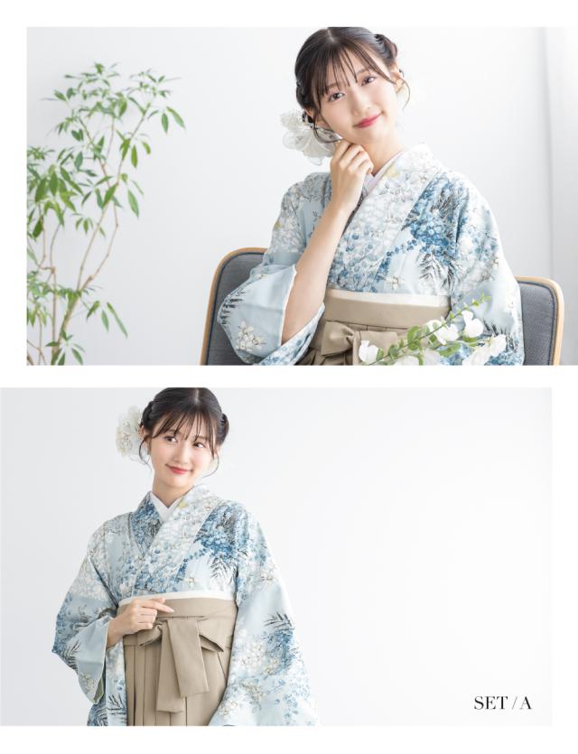 袴セット 卒業式 レディース 女の子 ジュニア 子供 4点セット 着物セット 青 茶 ブルー ベージュ ブラウン グレー ボタニカル 花柄 モダン 大学卒業式 購入 販売 創美苑 送料無料 身長138から175対応