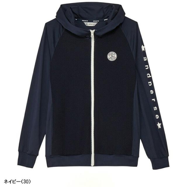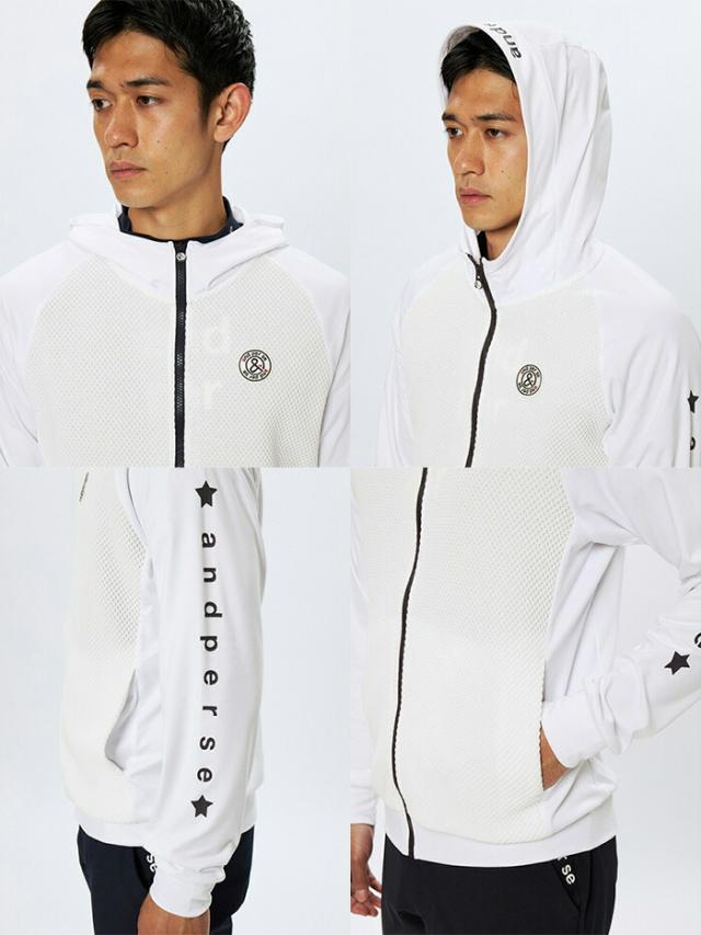 アンパスィ 長袖 フルジップ ブルゾン エアレーテックメッシュ 前身頃メッシュ素材 フーディーブルゾン メンズ AMF6915J2 アウター ゴルフウェア 2025年秋冬モデル and per se 秋冬ウェア ジャケット フード付き