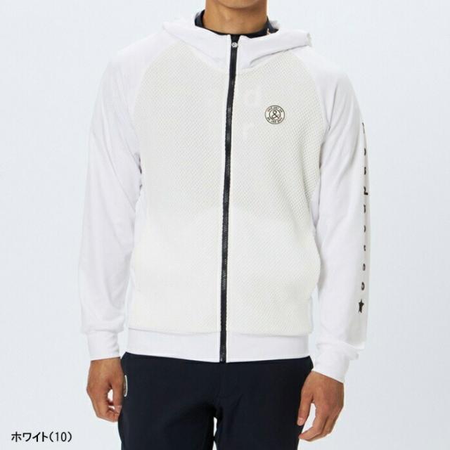 通気性と伸縮性の高いエアレーテックメッシュ素材&なめらかストレッチスウェットを組み合わせたデザインのフード付きブルゾンです。通気孔を大きく持たせたエアレーテック・アップルメッシュ素材と、マルチストレッチ&UVケア(UPF15-30、紫外線カット率85%以上)機能を持つショットスムーザー・スウェットの良さを引き出したドッキングデザイン。熱が発生しやすい部位に通気性の高い編地を施すことにより「一時的な暑さの発生」を軽減する仕組みに加え、スイング時の動きやすさも考慮したデザインで仕上げています。