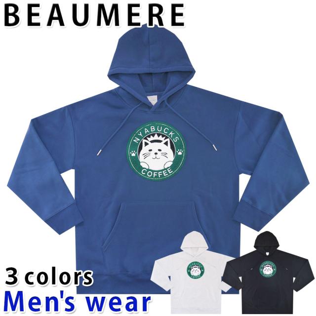 ★条件付き送料無料★ おもしろ 裏起毛 パーカー メンズ 12539075 ワイド スウェット ネコ 猫 コーヒー グッズ