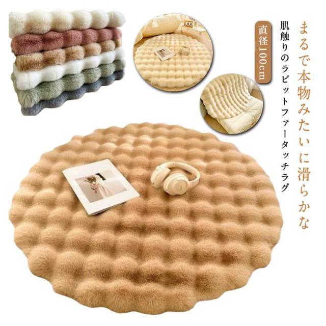 シャギーラグ 絨毯 洗えるラグ 洗えるラグ リビング エコファー ラグマット 円形 100cm ラウンド型 あったか 寒さ対策 もこもこ インテリア
