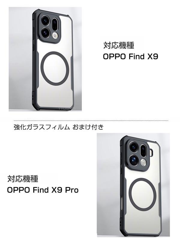 オッポ OPPO Find X9/Find X9 Pro クリア ケース カバー タフで頑丈 TPU&PC素材 背面マグネット留め 耐衝撃 落下防止 指紋防止 手触り抜群 保護ケース 便利 実用 人気 おすすめ おしゃれ 便利性の高い 四隅耐衝撃 背面カバー 強化ガラスフィルム おまけ付き