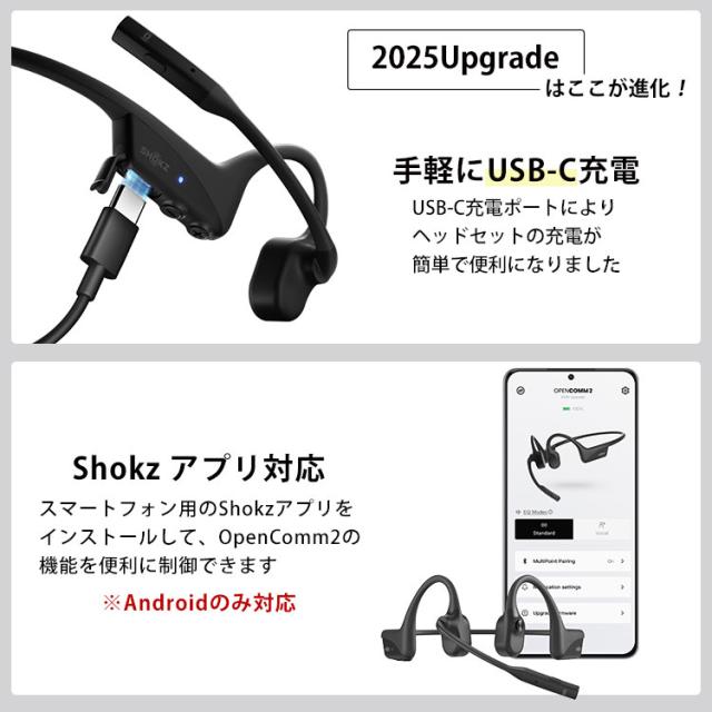 Shokz OpenComm2 2025 Upgrade ショックス オープンコムツー ビジネス用骨伝導ヘッドセット| Type-C充電 タイプC オープンイヤー型 ミュートボタン ワイヤレス 骨伝導イヤホン マイク付【送料無料(宅配便)】