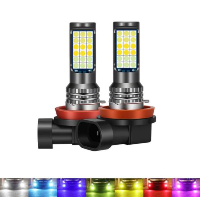 フォグランプ H8 H11 H16 HB3 HB4 H7 H3 LED フォグ 常時点灯&フラッシュ切替 7色選択可 ホワイト レッド ゴールド ブルー レモンイエロー LEDバルブ 白 赤 黄緑 青 バルブ LEDライト ファンレス 一体型 12V 車用 フォグライト 2個入