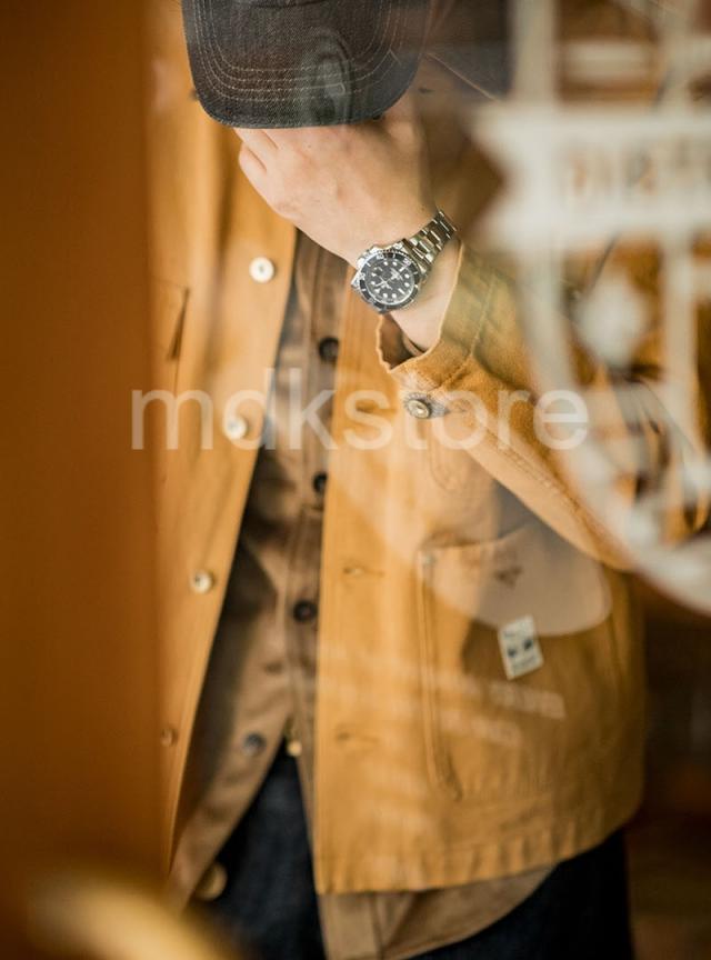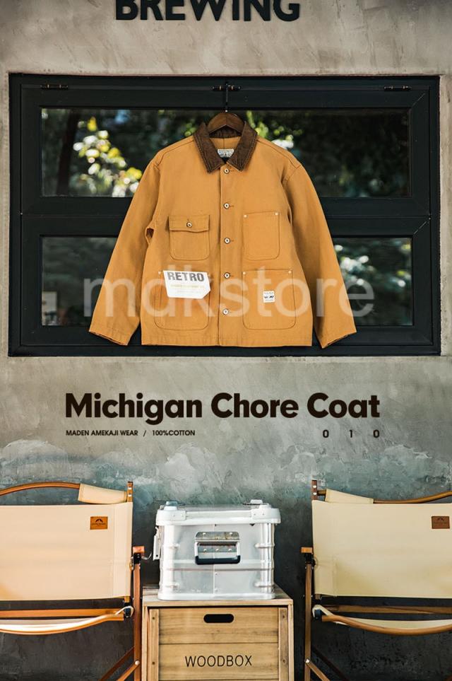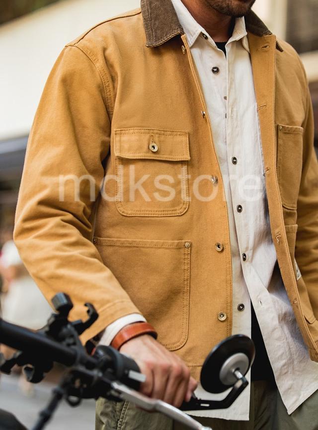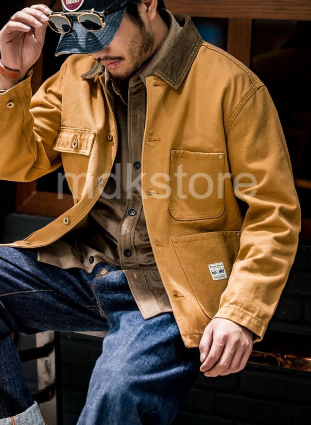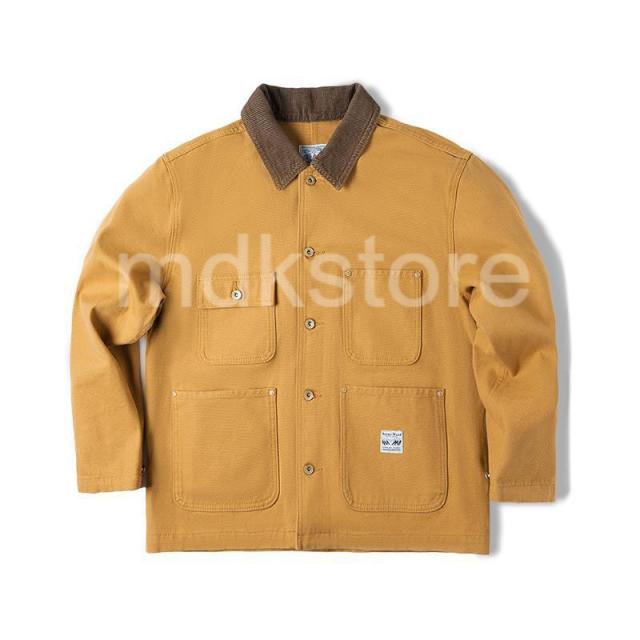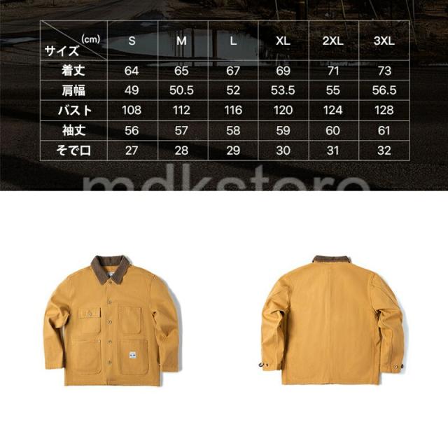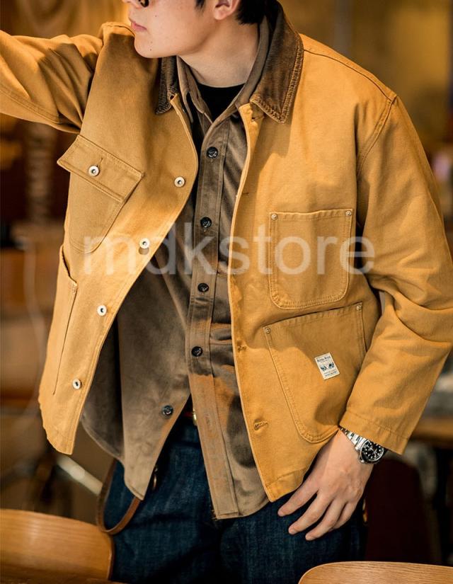 ワークジャケット メンズ アメリカンヴィンテージ風 ヘビーウェイト ミシガンキャンバス コットン 襟付き マルチポケット 長袖 アメカジ ジンジャーイエロー 春 秋 カジュアル アウター